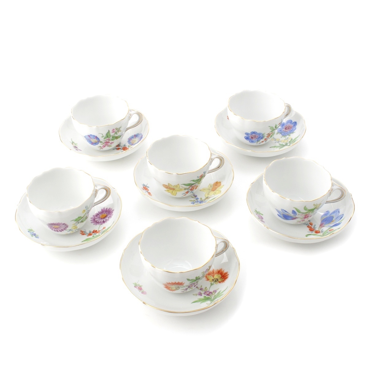 マイセン 陶器 ベーシックフラワー 5つ花 6客セット 食器 ホワイト マルチカラー【中古】