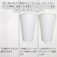 市販の、もしくはお手持ちの、30cmまでの長さのマグネット固定バータイプセンサーライトを装着し壁に引っ掛けるだけで、簡単におしゃれなセンサーウォールライトにできるランプシェード。(本製品はシェードのみとなります)