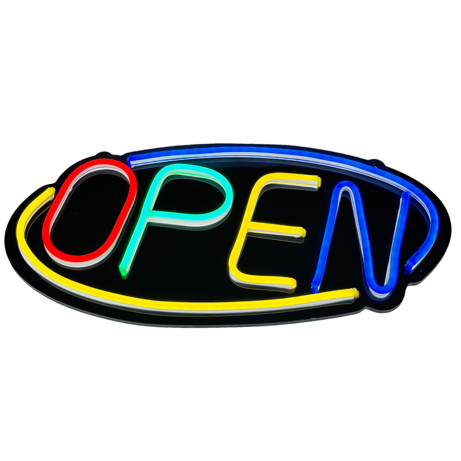 LEDネオンサインボード OPEN ブラックプレート 赤青黄緑4色LED USB 5V給電 工事不要 簡単設置