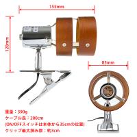 クロームメッキ処理が施されクールに光るボディとクリップ、そしてその先端に装着された2個のウッドシェード、どことなくクラシカルなデザインのクリップライト。
