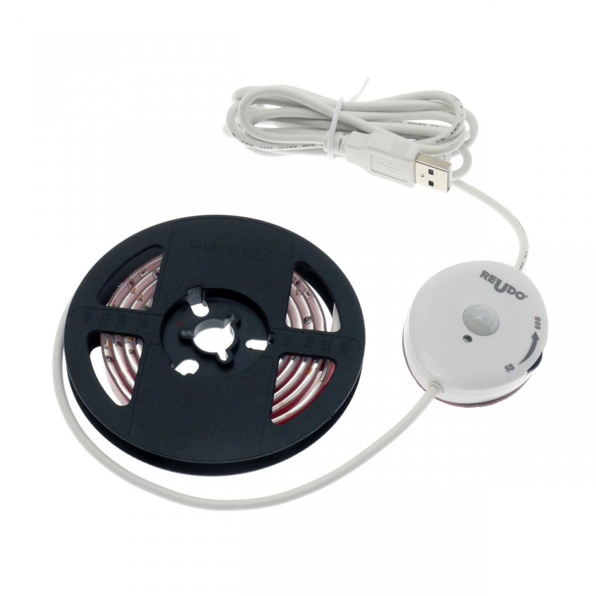 人感センサー LEDテープライト ベッドライト フットライト 長さ1m 電球色 60ルーメン 点灯時間5-60秒無段階調整 5V USB電源使用 ACアダプタは付属しません