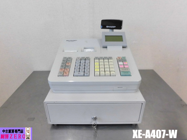 ■中古厨房 シャープ SHARP 業務用 電子 レジスター XE-A407-W ブロック別キーボード 20部門 3紙幣6硬貨 オートカット バックライト液晶 鍵