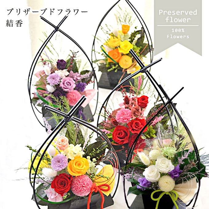 ほんのり香る 100% プリザーブドフラワー ギフト 和風 結香 誕生日 送料無料 ブリザード 還暦 古稀 米寿 お祝い お供え 白寿 傘寿 結婚記念日 父の日