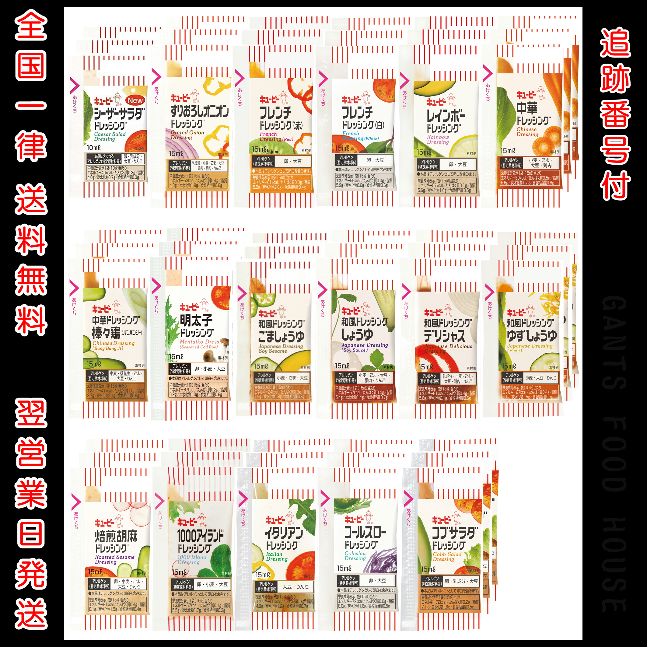 【訳アリ在庫処分】キユーピー ドレッシング 小袋 17種×各3袋 合計51袋 | キューピー アソート 小分け 乳化タイプ セパレートタイプ 10ml 15ml 業務用
