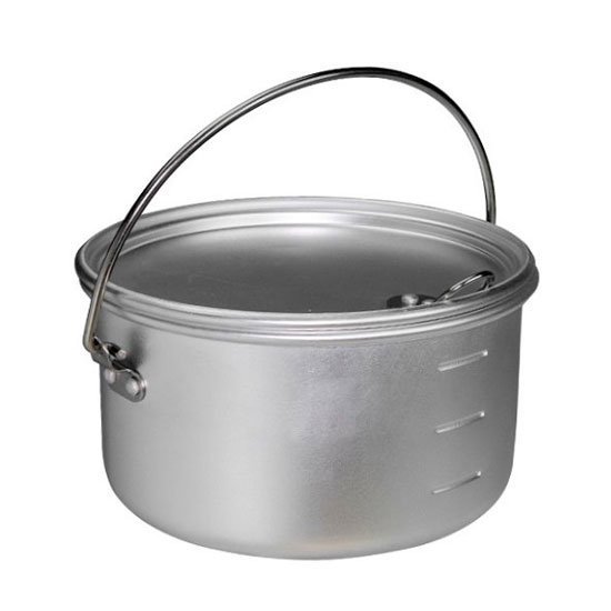 焚火でもガンガン使える様に特殊コーティングはせずにアルマイト加工のみとし、取り外し可能なベイルハンドルやフラットなフタなどはオリジナルをそのまま踏襲。