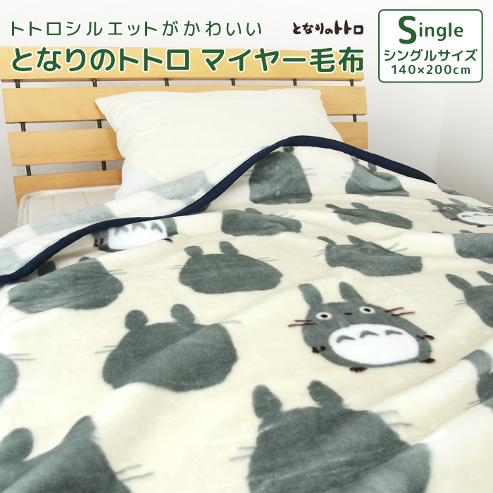 シンプルに表現したトトロデザイン、ふんわり軽くてやわらかいニューマイヤー毛布。