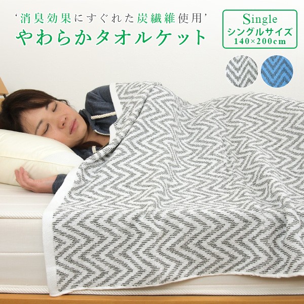 タオルケット 消臭 シングル 140×190cm シェブロン柄 夏掛け 肌掛け 涼感 吸水 通気性 炭入り 洗える シンプル 北欧