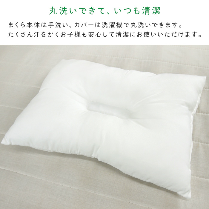 カバーは洗濯機OK、枕本体は手洗いOK、いつも清潔にお使いいただけます。