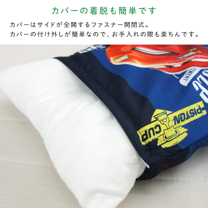 中身もカバーも洗える、カーズのジュニアまくら。
