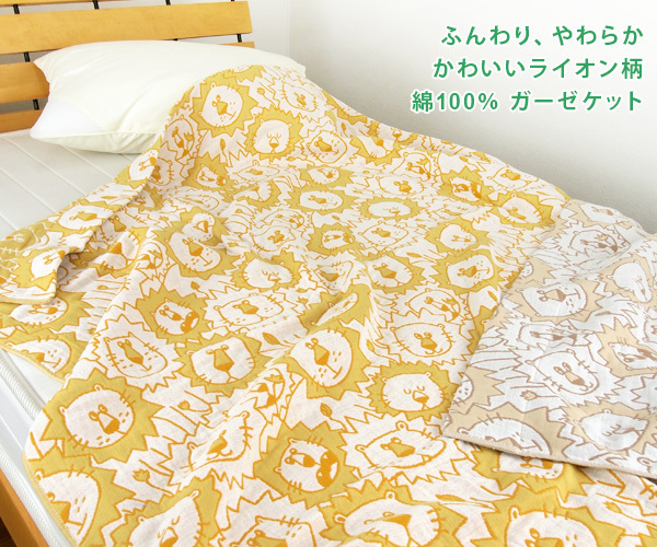 ガーゼケット ライオン柄 シングルサイズ 140×190cm 綿100% 3重ガーゼ 夏掛け 肌掛け 涼感 吸水 通気性 洗える タオルケット