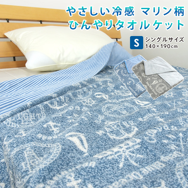 タオルケット 接触冷感 シングル ひんやり ケット マリン柄 140×190cm 涼感 冷感 クールケット 夏掛け 肌掛け 軽い 軽量 通気性 速乾 薄手 洗える キルトケット
