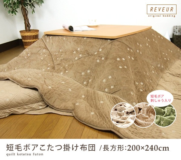こたつ布団 長方形 200×240cm こたつ掛け布団 洗える コタツ布団 おしゃれ こたつ 短毛ボア 刺繍