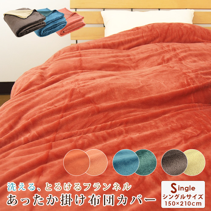 ふんわり・とろける触り心地のフランネル掛け布団カバー。お手持ちの掛け布団に掛けるだけで暖かくなります。