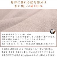 吸水性・吸湿性が高く、湿気がこもらずサラっとベタつきにくくムレにくい快適な使用感。チクチクせず、静電気が起きにくいのも特徴で、ホコリも寄せ付けにくい。電気毛布との相性も良いです。