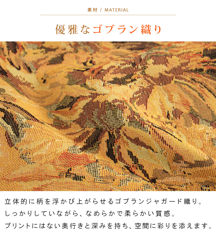 立体的に柄を浮かび上がらせるゴブランジャガード織り。しっかりながら、なめらかで柔らかい質感です。