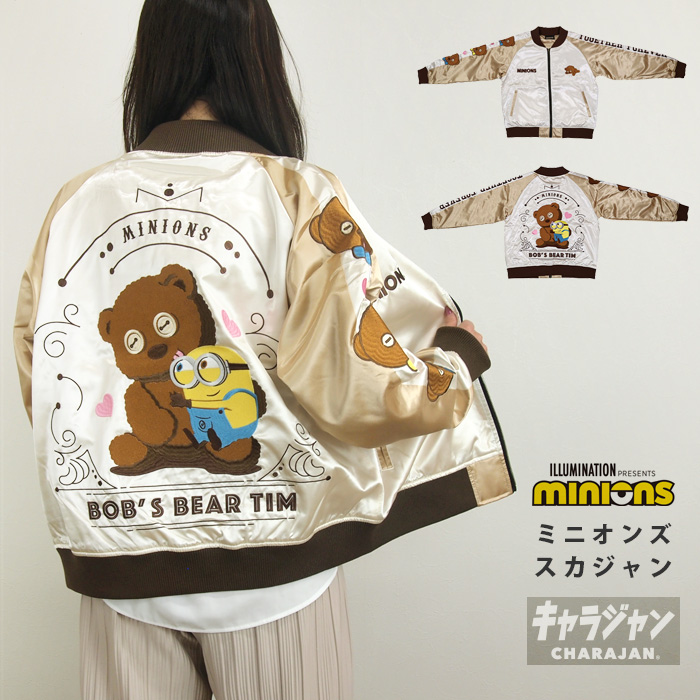 ミニオンズ スカジャン ブルゾン ジャンパー 刺繍 アウター ジャケット レディース メンズ ユニセックス 羽織り サテン かわいい お洒落 ボブ ティム Minions