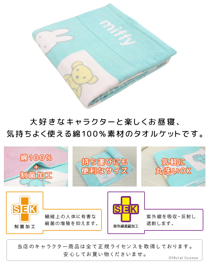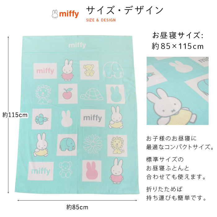 お子様のお昼寝にピッタリのタオルケット/ミッフィーのかわいいデザイン。