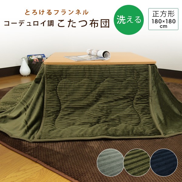 ふんわり暖かなフランネル素材のこたつ掛け布団/正方形。なめらかでソフトな肌さわり、秋冬アパレルの定番"コーデュロイ"調に仕上げたシンプルなデザイン。