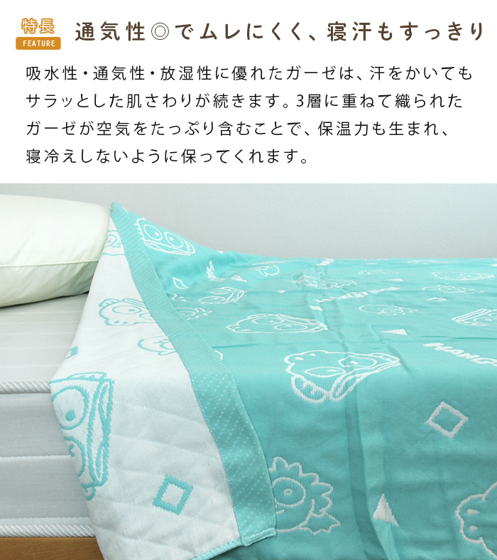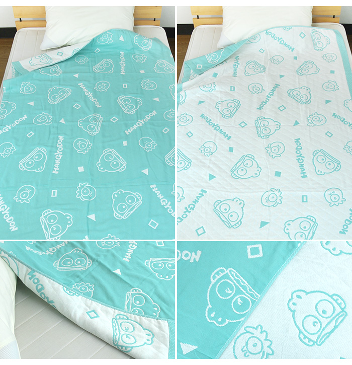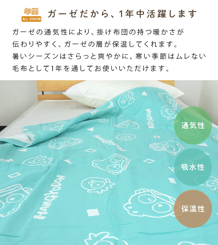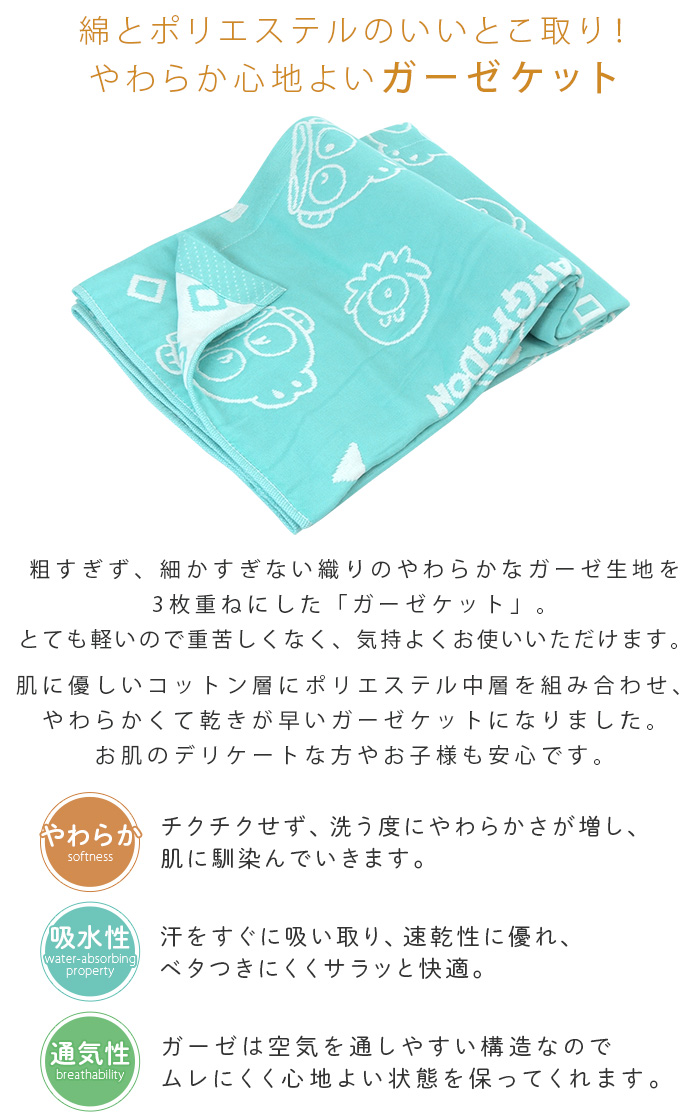 ガーゼケット ハンギョドン ハーフサイズ ハーフケット 綿混 3重ガーゼ 夏掛け 肌掛け 涼感 吸水 通気性 洗える タオルケット 寝具 布団 サンリオ