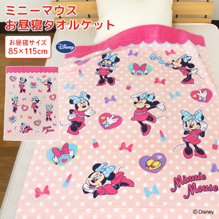 お昼寝ケット ディズニー ミニーマウス 85×115cm タオルケット 綿100% ブランケット おひるねケット ベビーケット タオル ビックタオル 保育園
