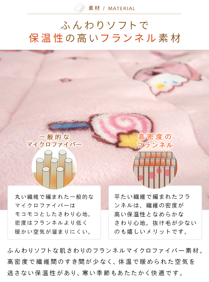 なめらかなシルクタッチが心地良く、高密度なフランネル素材が体温で暖められた空気をキープしてくれます。