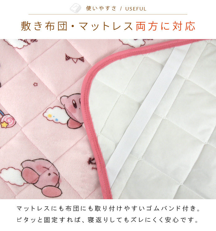軽くてふんわり暖かい、なめらかフランネル敷きパッド/シングルサイズ。星のカービィのかわいいデザイン。