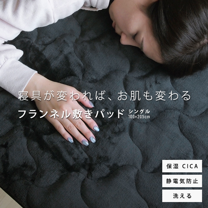 敷きパッド ベッドパッド 敷き毛布 スキンケア シングル CICA シカ 保湿 あったか フランネル シーツ 暖かい ボリューム 静電気防止 蓄熱 肌乾燥対策 おしゃれ