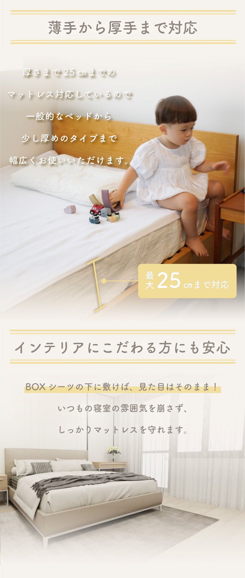 ベッドを清潔に保ち、布団やマットレスを長持ちさせます。