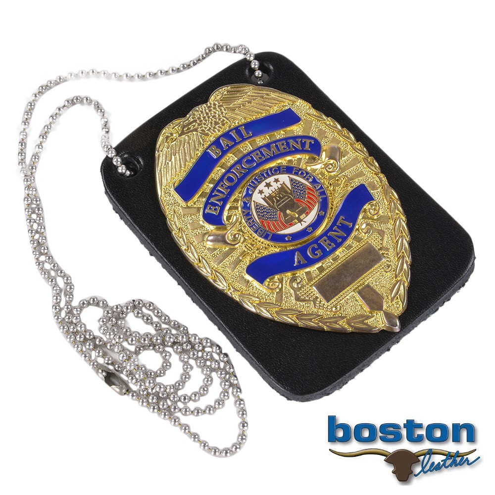 約4mmの厚さの革に縦型クリップを取り付けるBOSTON製のバッジホルダー。ネックチェーンも付属しているので首から下げて持ち運ぶことも可能。バッジホルダーへは、縦型クリップの付いたバッジを取り付けることができます。4050