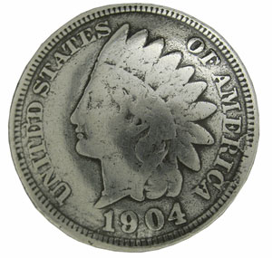 1904年の1セント、コインコンチョのレプリカです。インディアンペニーは1859年〜1909年まで発行。裏面にシカゴスクリュー付き。