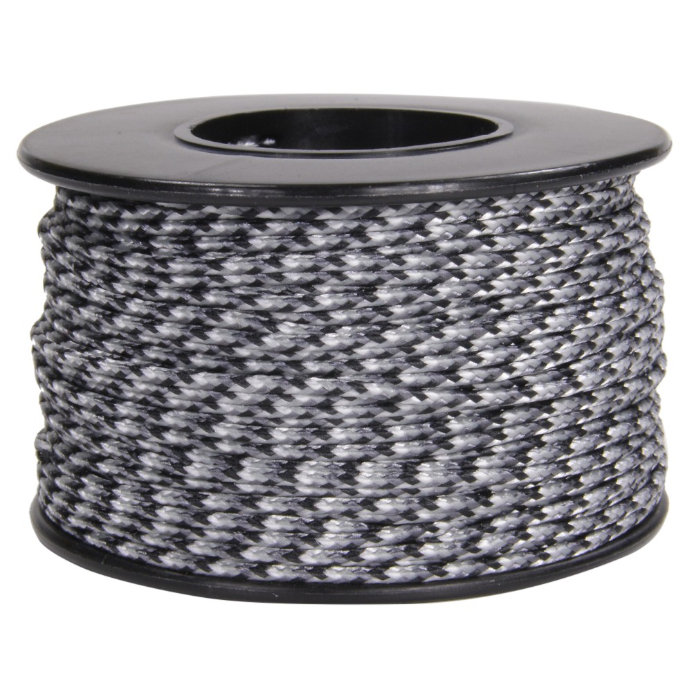 ホワイト、グレー、ブラックのモノトーンカラーを基調とした幾何学迷彩が特徴であるUrban Camo(アーバンカモ)デザインの、ATWOOD ROPE(アトウッドロープ)社製の1.18mm Micro Cord(マイクロコード )です。