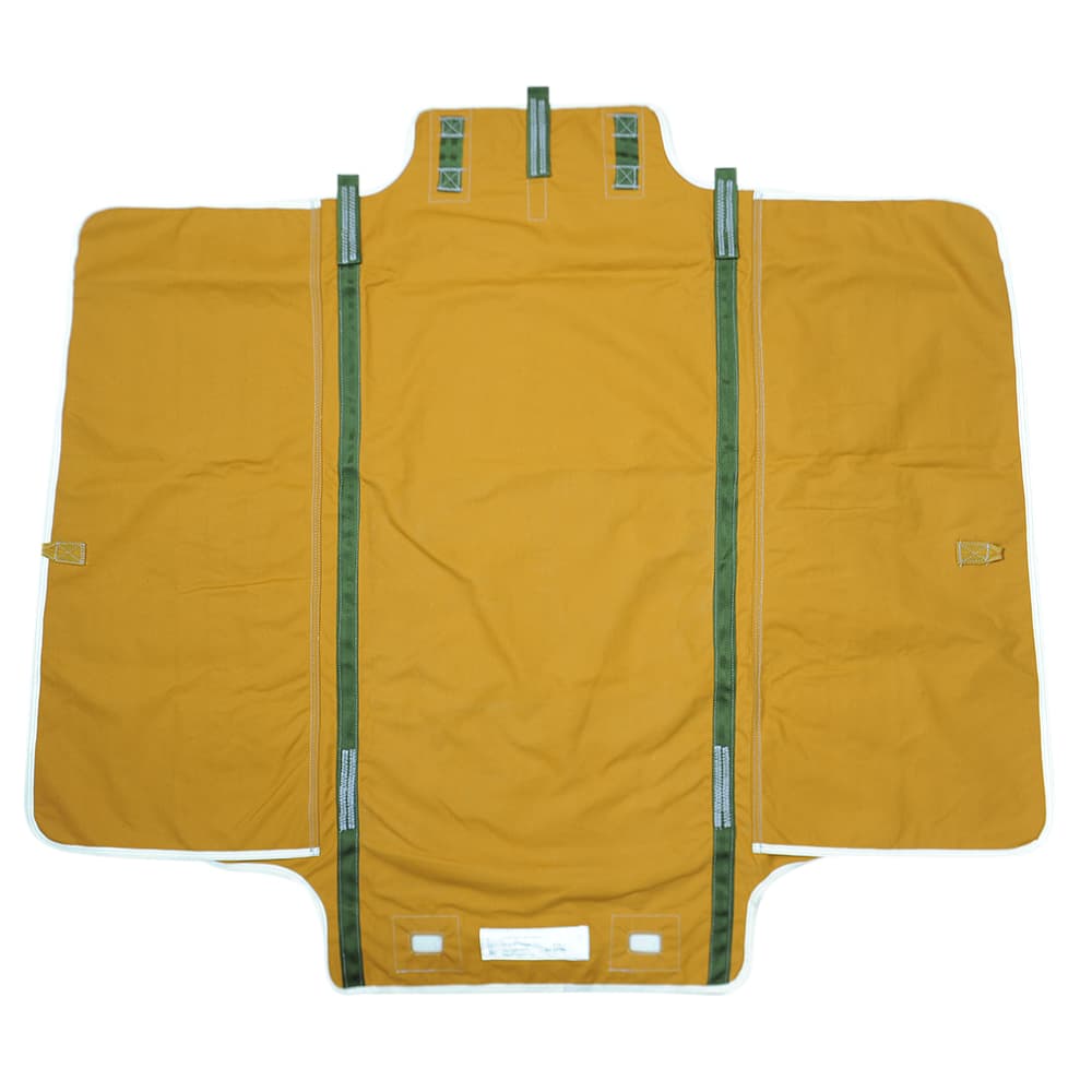 航空機からの降下ミッションなどに使用されるパラシュートを包むために使用されていました。左右にはそれぞれ7つ並んだ穴が開いており、パラシュートコードを通して結び付けられるようになっています。