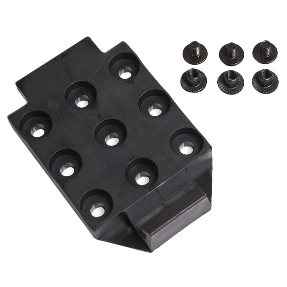 MOLLE対応のチェストリグやベルトパッド側にベースプレート、ホルスター側にはマウントプレートを取り付けることでハンドガンの装着位置をホルスターごと変えることができるアタッチメントシステムです。
