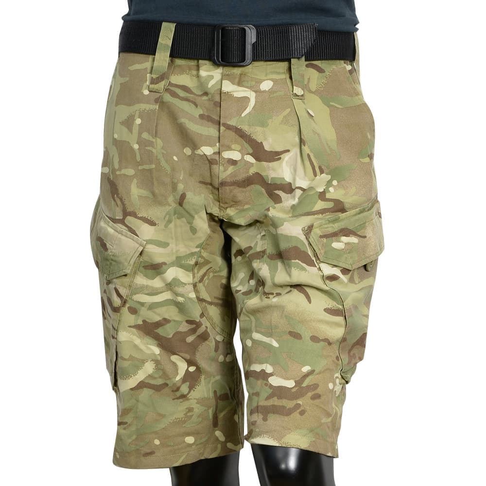 5つの大きなポケットを備えた、迷彩カーゴパンツのハーフバージョン。ウエスト部分にゴムバンドが内蔵されており、両サイドに取り付けられたボタン式アジャスターによって締め具合を調整できます。ゴムバンドは取り外しも可能。