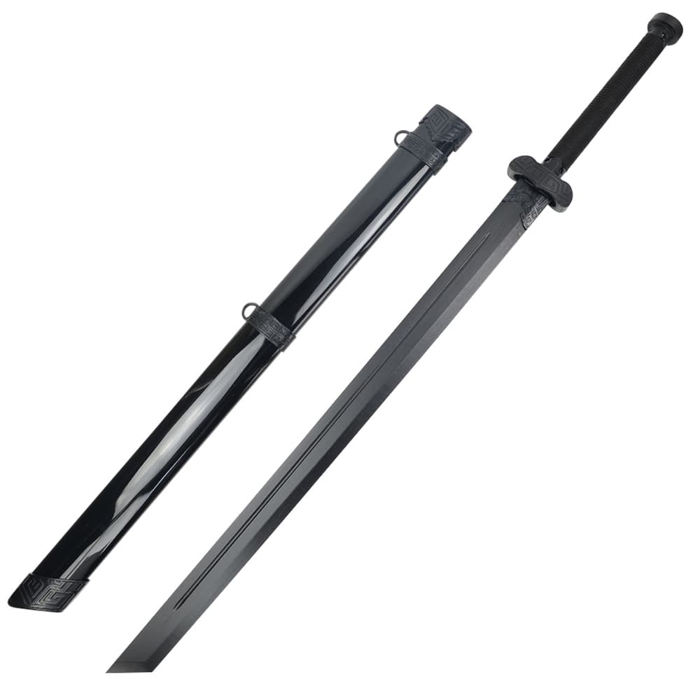 中国剣をモチーフにデザインされた直刀型のトレーニングソードです。 柄(グリップ)には、滑りにくく、手にしっかりと馴染む柄巻き仕上げを採用。稽古や演武時にも安定した握り心地を実現します。 また、下緒穴(ストラップホール)付きの設計により、ストラップの取り付けが可能で、持ち運びや保管時にも便利です。