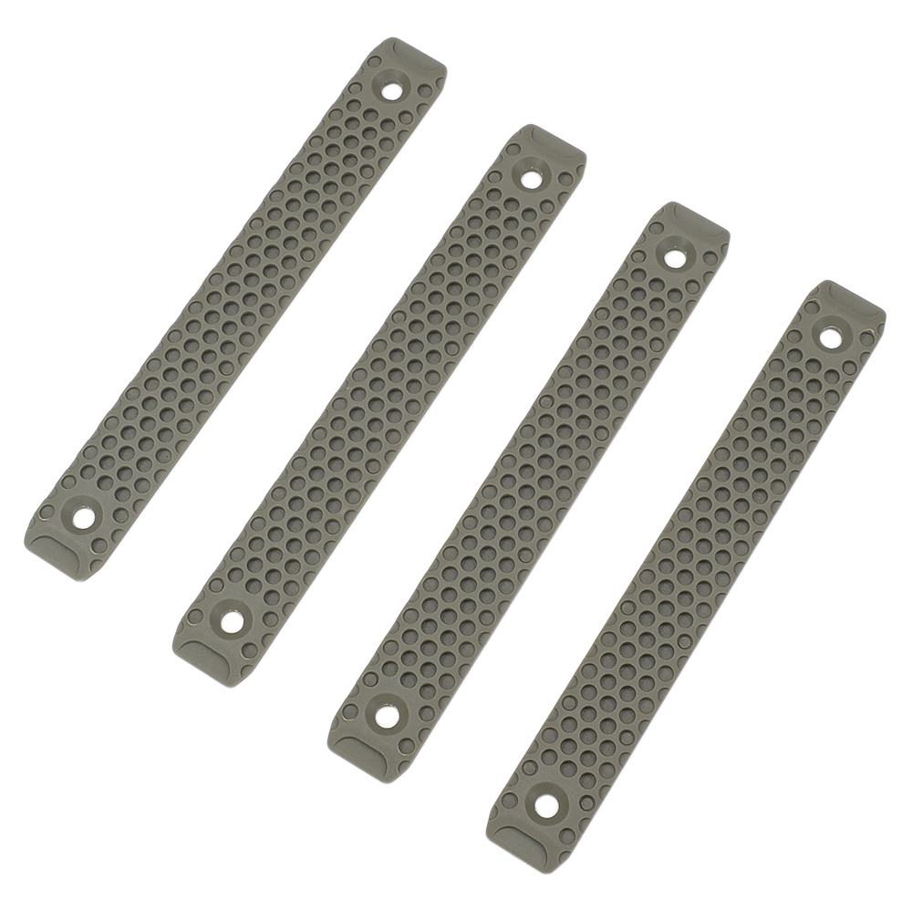 バブルテクスチャーは握った際に自然にフィットし、扱いやすさとホールド性を向上させます。M-LOK規格に合わせた設計のため、取り付けや位置調整もスムーズです。 4本セットなので、必要な位置だけに取り付けてポイントグリップとして使ったり、広範囲に配置して安定性を重視したセッティングにしたりと、カスタムの自由度も高め。外観のドレスアップと実用性を同時に叶える、汎用性の高いレールカバーです。