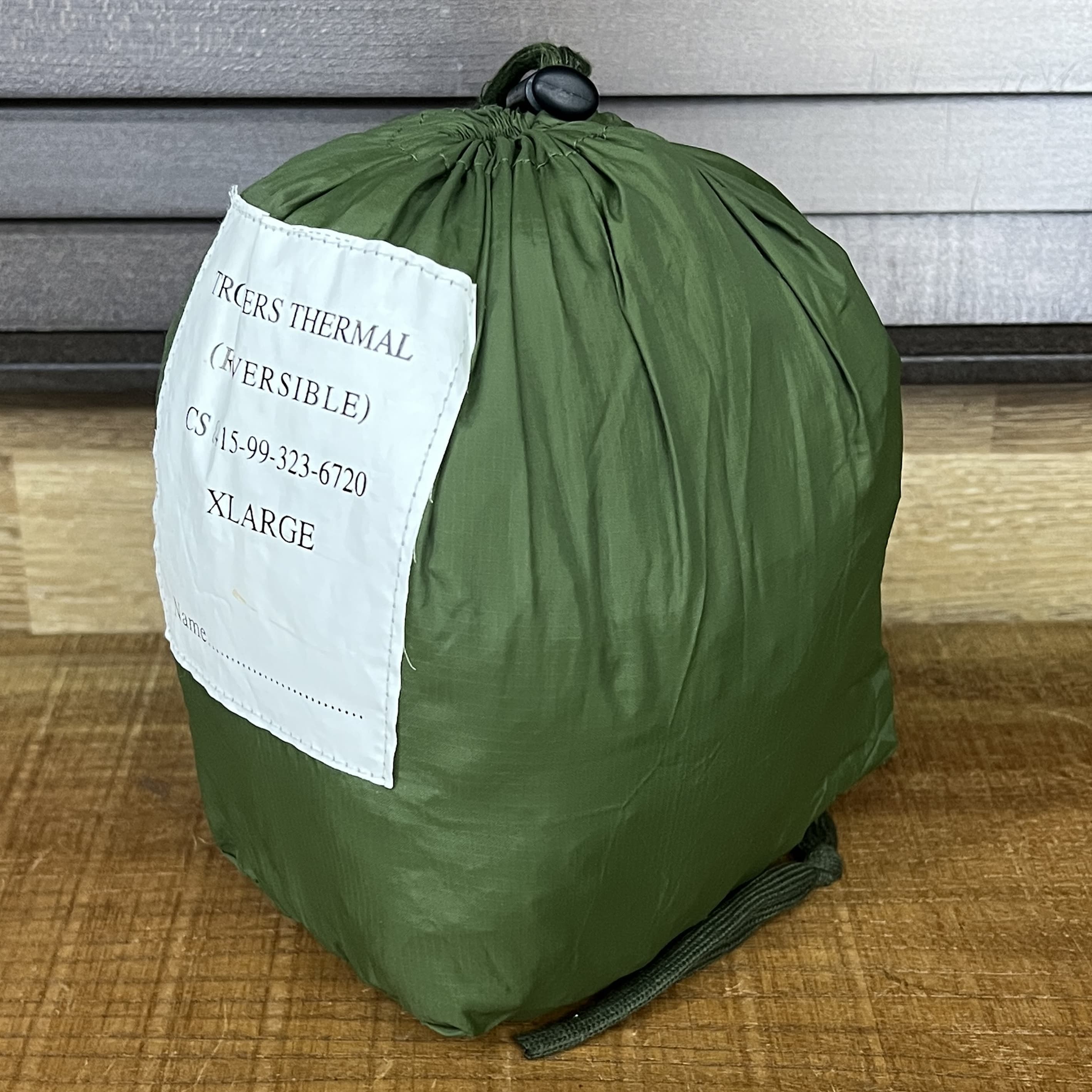 イギリス軍から放出された防寒着用の収納袋。ジャケットもしくはトラウザー(パンツ)を入れるために、使用されていました。