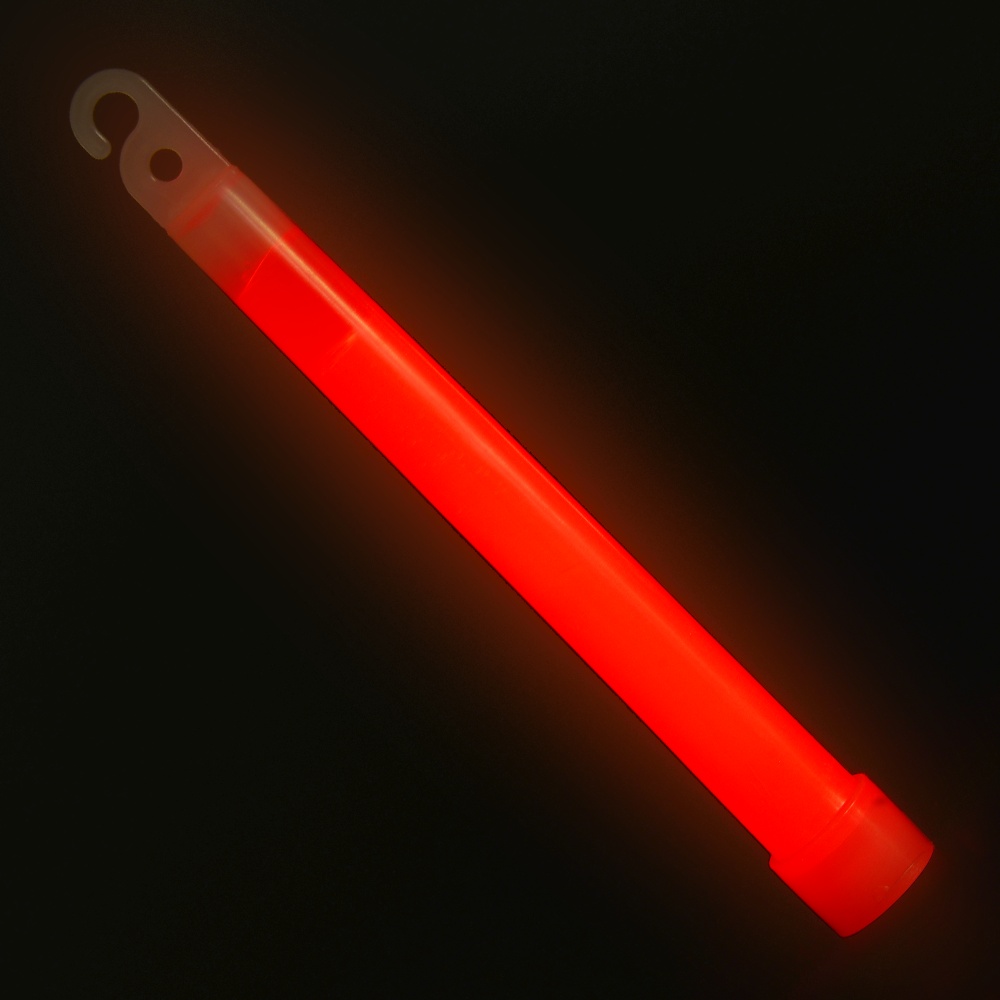 内部のガラス管を割ることで、2種類の液体が混ざり化学反応によって発行します。発熱や引火性はなく、安全に使用可能。