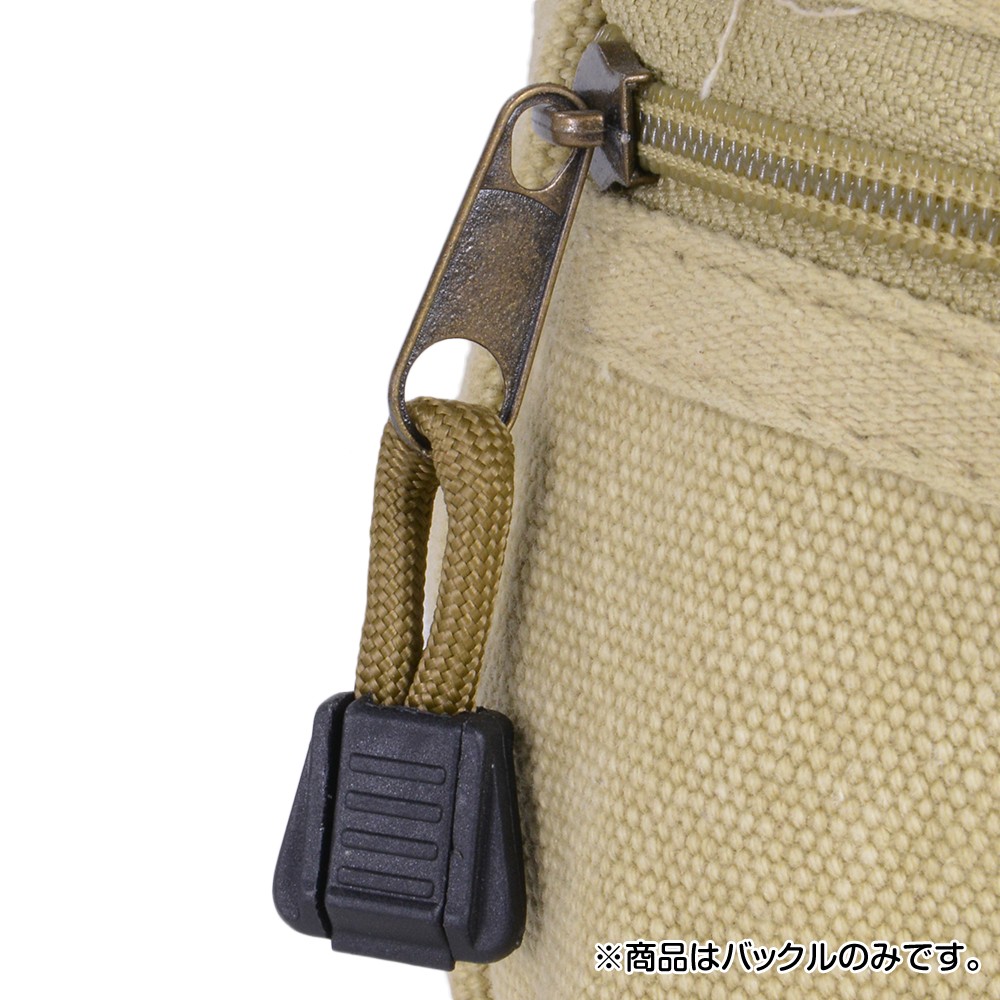 パラコードなどを取り付けポーチのファスナーなどの持ち手部分を付ける事の出来るバックル。パラコードなどを紐を利用する事で、取り付ける事が出来ます。