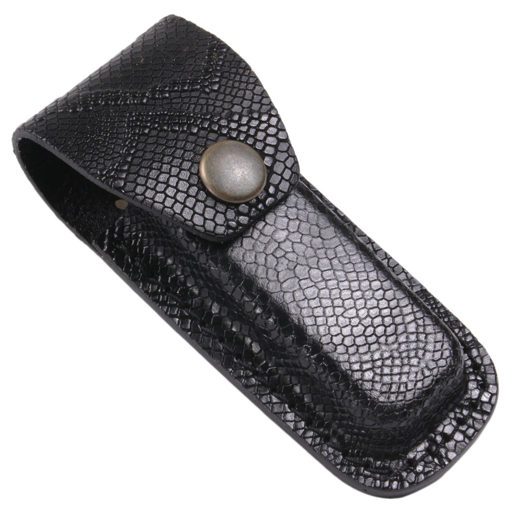 折りたたみナイフやツール、小物などを収納することができる、パイソン調の革製ナイフポーチ。