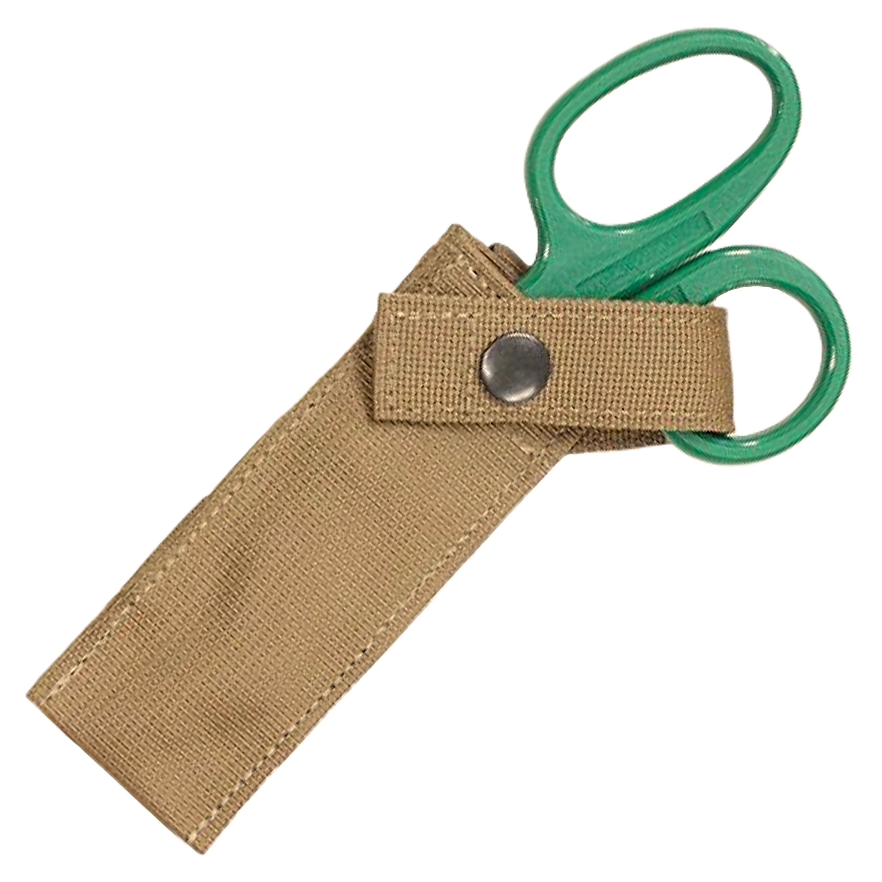 衛生兵が扱う医療用はさみ(メディカルシザー)を収納するポーチで、刃をポケットに収納し、はさみのハンドルにストラップを掛けて固定します。プレートキャリア、チェストリグ、バッグ又はベルトなどのMOLLEへ取り付ける事が出来ます。