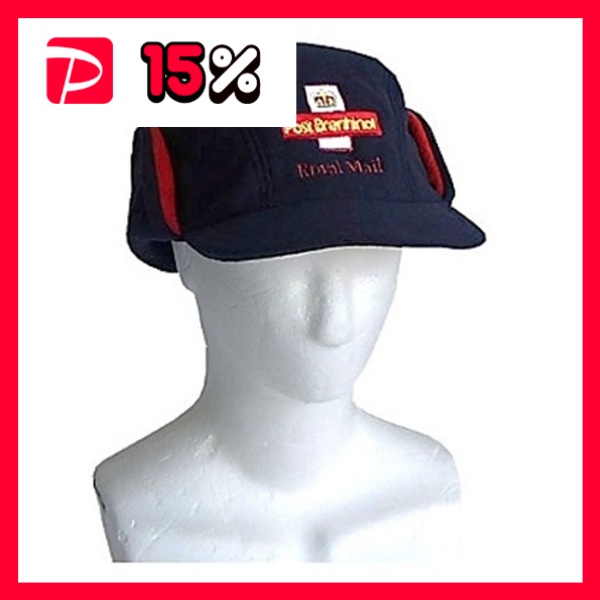 耳当て、首当て付きで、ボタンを外すと防寒仕様に変わります。ロイヤルメールお馴染みの刺繍ロゴが入っています。