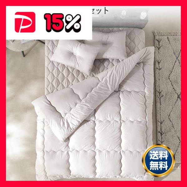 セミダブル(4点セット):掛け布団×1 + 枕×1 + ボックスシーツ×1 + 収納ケース×1