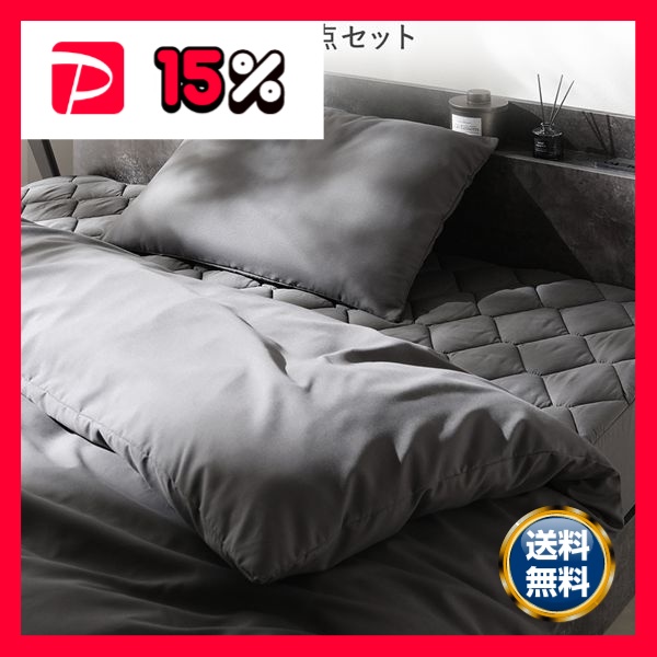 ■すぐに使える布団4点セット(掛け布団×1+枕×1+ボックスシーツ×1+収納ケース×1) セミダブル チャコールグレー