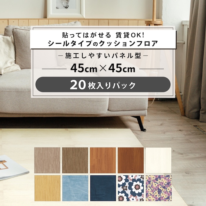 クッションフロア シールタイプ 並べて敷くだけ 45cmx45cm パネル型 3mm厚 20枚入り 全10柄 フロアパネル 日本製 両面テープも接着剤も不要 賃貸OK