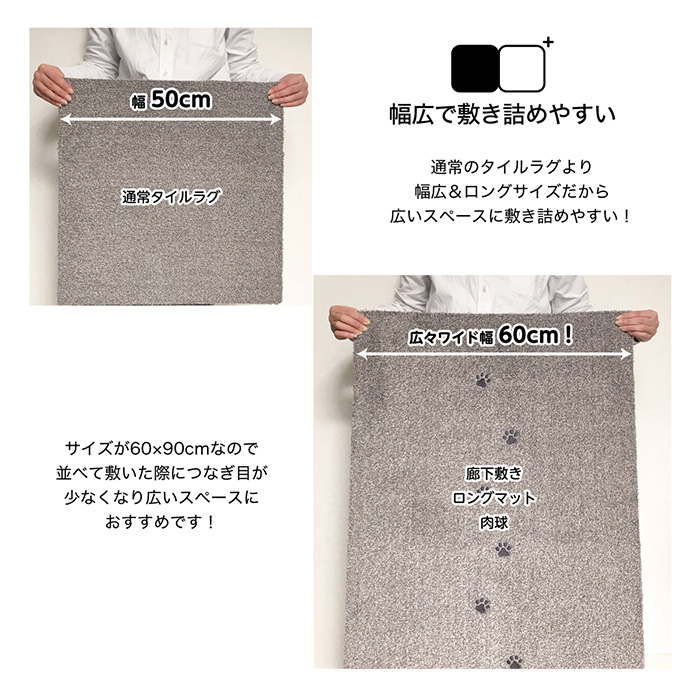 Rugtasu タイルラグ 廊下マット てくてく肉球