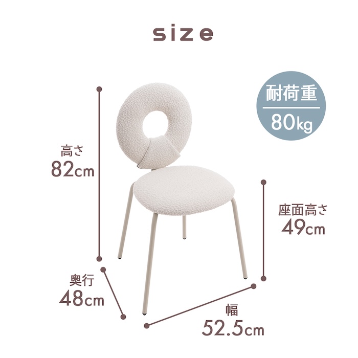 | サイズ | 幅52.5×奥行48×高さ82cm、座面高さ:49cm ※製造時に生じる若干の個体差や、測定方法により表記と多少異なる場合がございます。 |