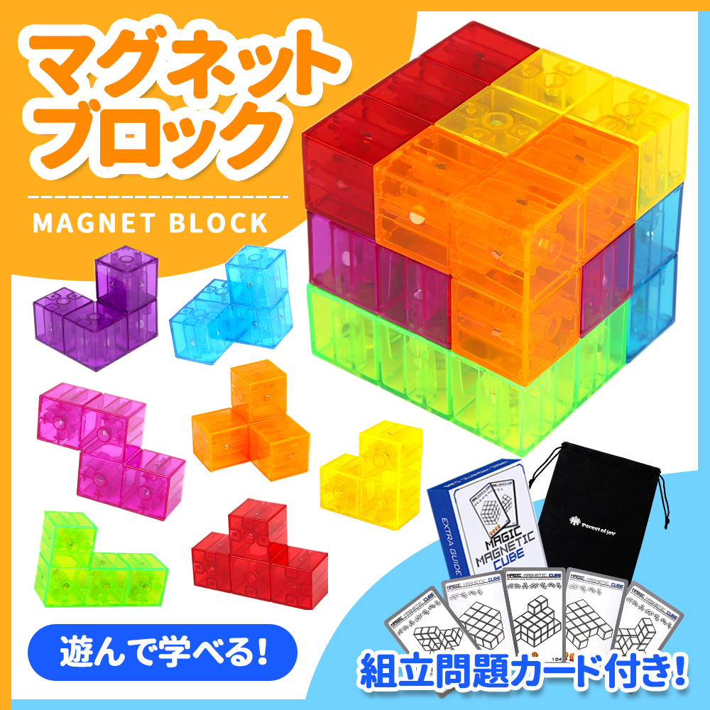 マグネットブロック 立体パズル 磁気おもちゃ 磁石ブロック マグネットパズル 知育玩具 組立問題カード付