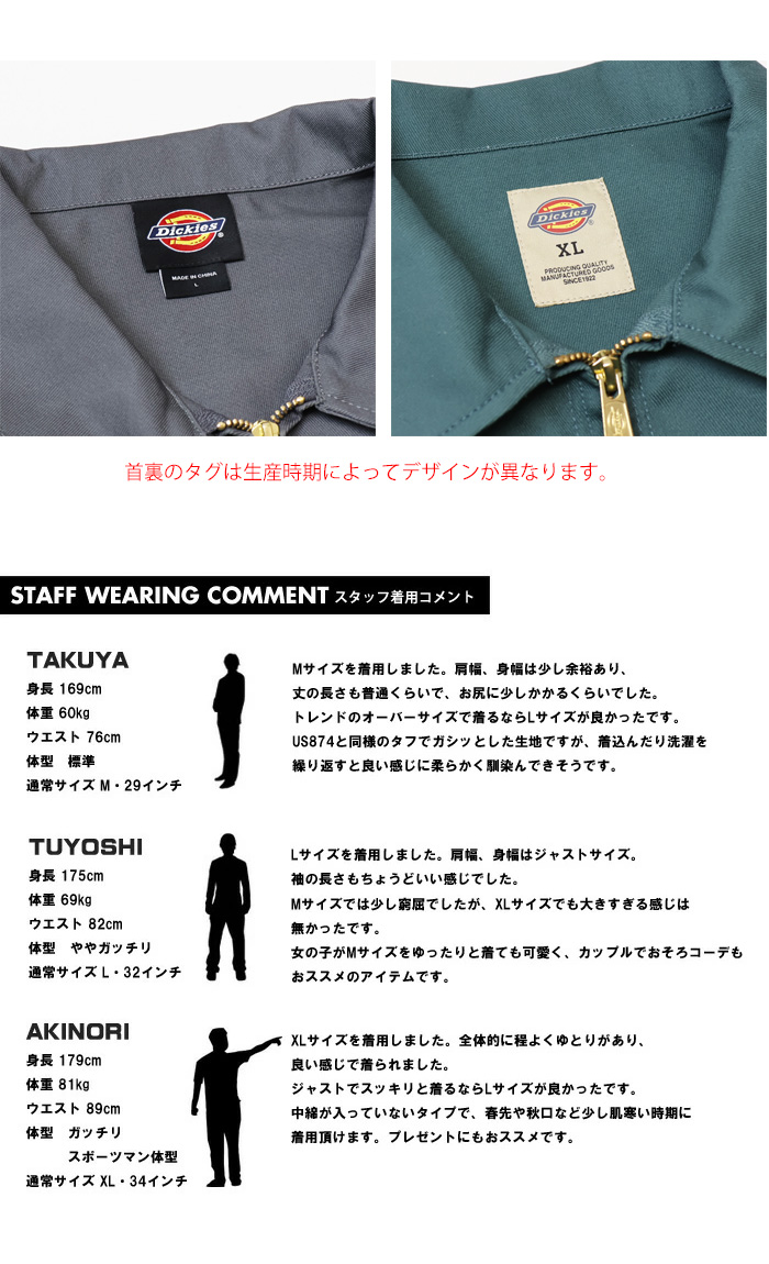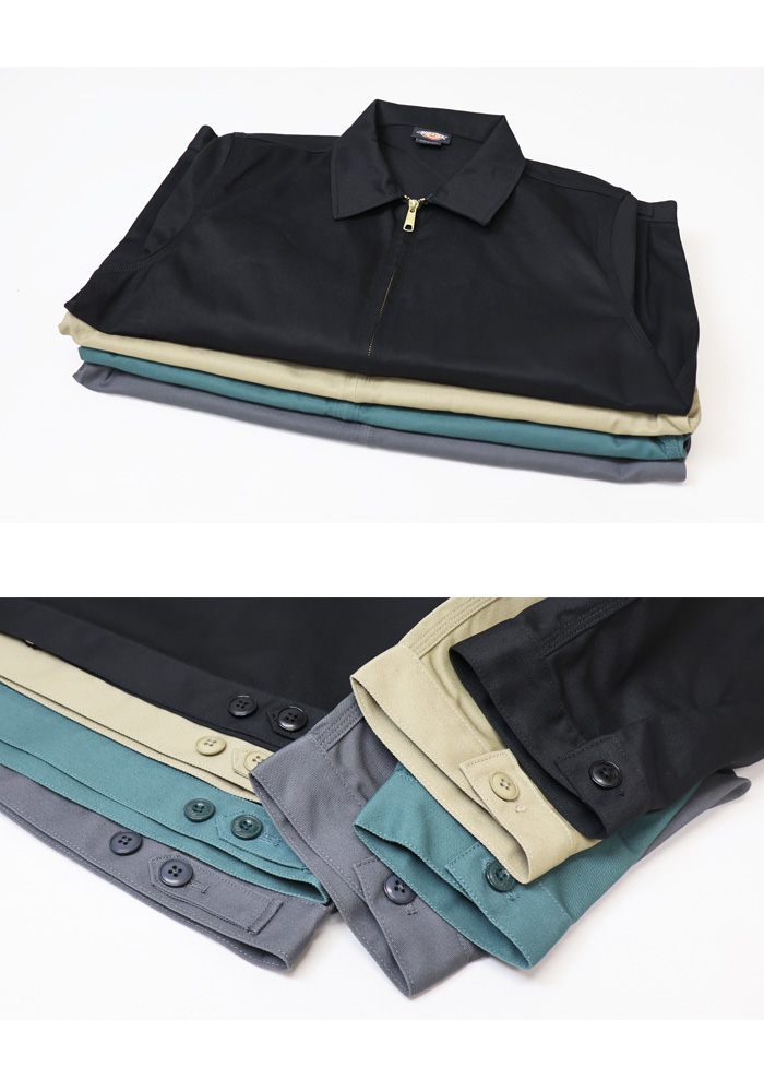 長い歴史を持つディッキーズの名作、アイゼンハワージャケット(Eisenhower jacket)の中綿を省いたライトブルゾンモデルが登場しました。ジャパンサイズでありながら、ややルーズなシルエットなのでストレスなくご着用頂けます。874と同様のファブリックを使用しているので、ガシガシ着用し経年変化をお楽しみください。