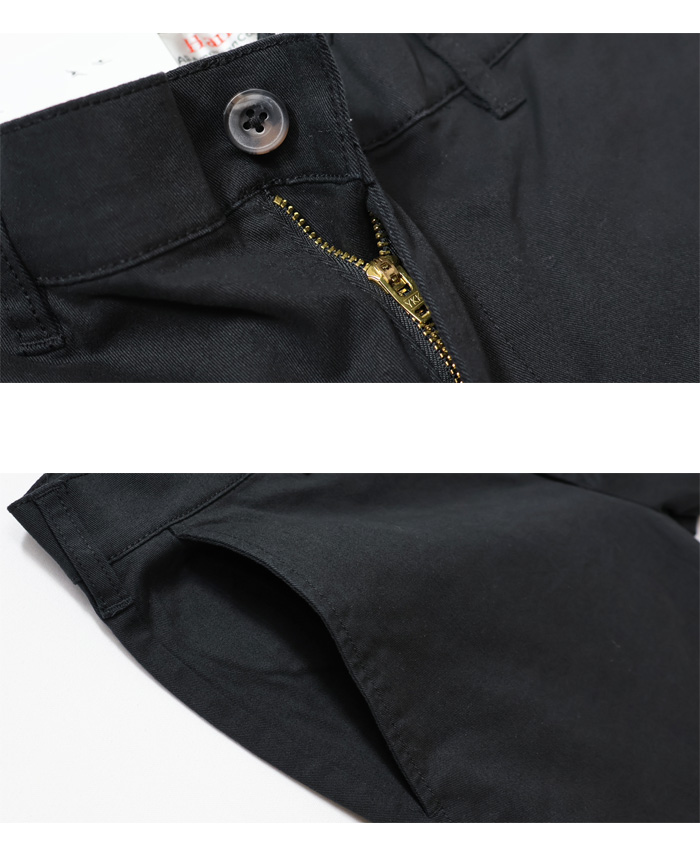 素材には伸縮性の高いストレッチチノを採用。シルエットはスソに向かって少し細くなったテーパードタイプ。カジュアルスタイルはもちろん、仕事着やキレイめなど、幅広く万能に使って頂ける1本です。